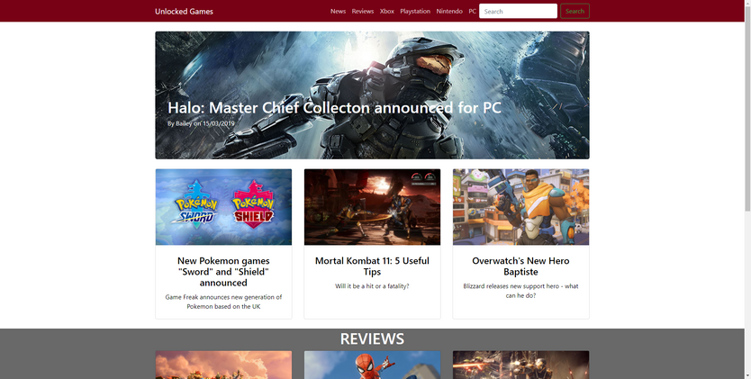 Shown below are four images of the website design process for the layout of a website. For this example, a games journalist website design was created.